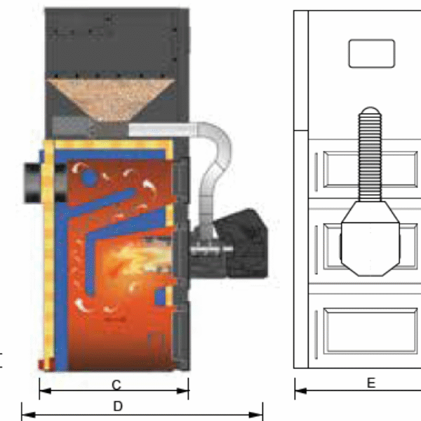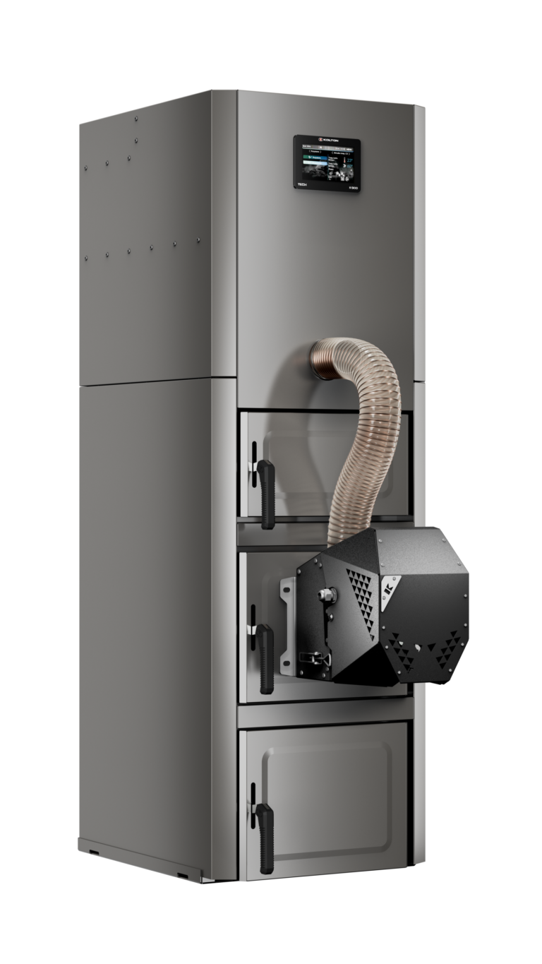 Kocioł cechuje kompaktowa i zwarta budowa z zasobnikiem pelletu umieszczonym od góry. Istotną zaletą kotła jest korpus kotła wykonany ze stali o gr. 6 mm i poziomymi pólkami, łatwymi do czyszczenia wymiennika. Kocioł wyposażony jest w prosty intuicyjny sterownik K692. Automatyka obsługuje pompę c.o., c.w.u., cyrkulacyjną,